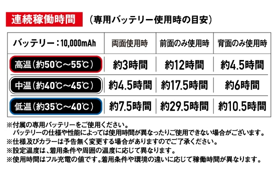 わずか約15秒で温まります。発熱箇所は、前面と背中面合わせて9ヶ所あります。